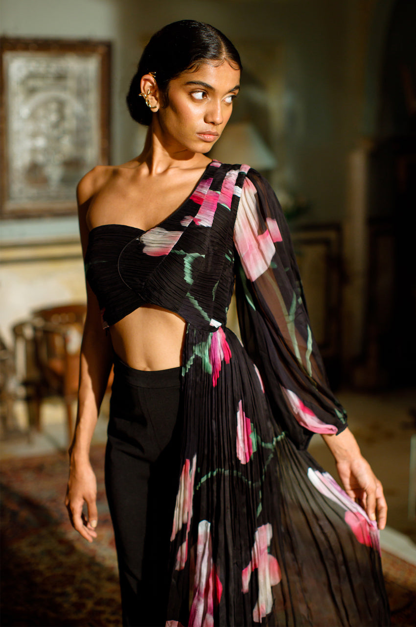 - One shoulder draped top